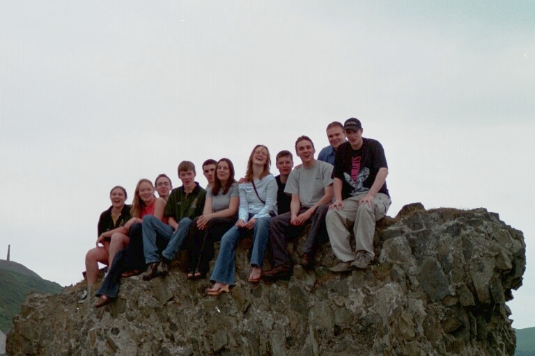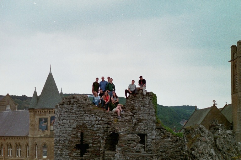 | Some of the 2000/2001 club in Aber castle | Again in the castle with the old college in the background |